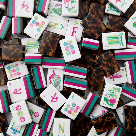 ชุดไพ่นกกระจอกอเมริกัน4ชั้นแบบกำหนดเอง160กระเบื้องพลาสติกพร้อมลายเสือดาวและเต่าไอเดียของขวัญสุดหรู